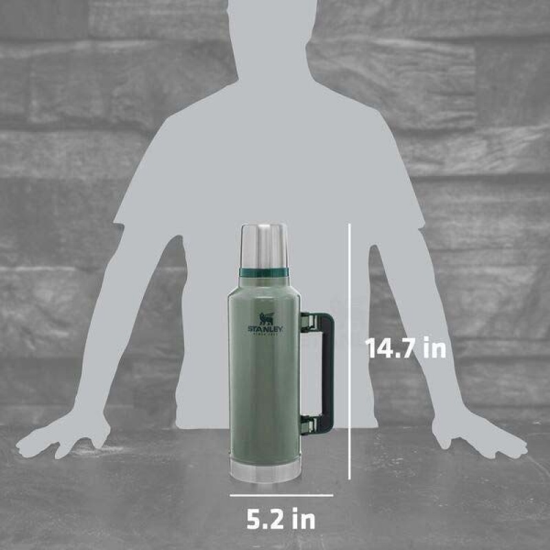 Stanley’s Classic Legendary 2-quart vacuum bottle is engineered for adventure, keeping beverages hot for up to 45 hours and cold for up to 48 hours. Its durable 18/8 stainless steel construction with double-wall vacuum insulation ensures superior temperature retention, while the leakproof design and folding handle make it perfect for travel. The insulated lid doubles as a cup, and it’s dishwasher safe for easy cleaning. Built to last with BPA-free materials, this bottle is ideal for camping, tailgating, or daily use.