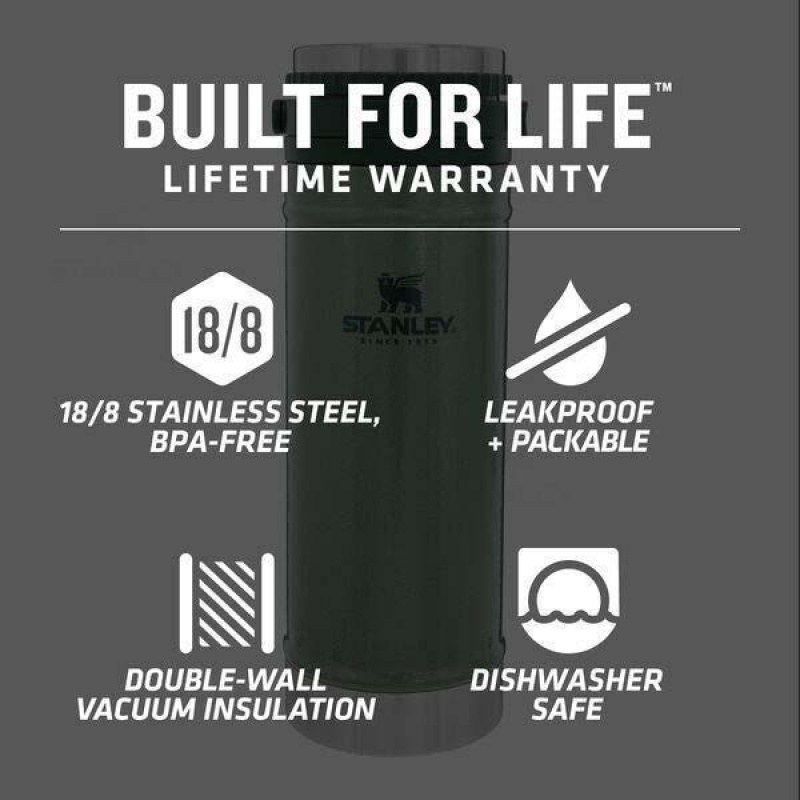 Stanley’s Built for Life guarantee ensures quality and reliability. Dimensions: 3.5L x 3.9W x 9.6H inches, Weight: 1.1 lb. Dishwasher safe for easy cleaning.